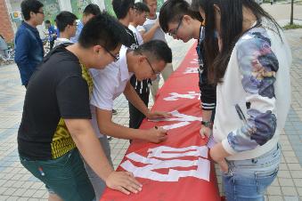 为进一步贯彻落实《教育部关于在全国各级各类学校禁烟有关事项的通知》,为了全体师生的身心健康,财经信息系近日向全院师生发出了开展禁烟活动打造文明校园的活动。 志愿者们向各班级发放了禁烟倡议书,并带领大家在“珍爱生命,拒绝烟草,创建文明和谐校园”的条幅上郑重签下了名字。志愿者们也在校园多处醒目位置张贴了“禁止吸烟”、“无烟校园”等提示语。 活动下一步计划在各班选出了禁烟志愿者,在同学们中开展监督排查工作。系列活动营造了浓厚的禁烟氛围,教育广大师生从自己做起,远离烟草并勇做禁烟使者,向烟草宣战,共创无烟校园,共建清新优美的生活环境。 财经信息系 2015年6月2日 |