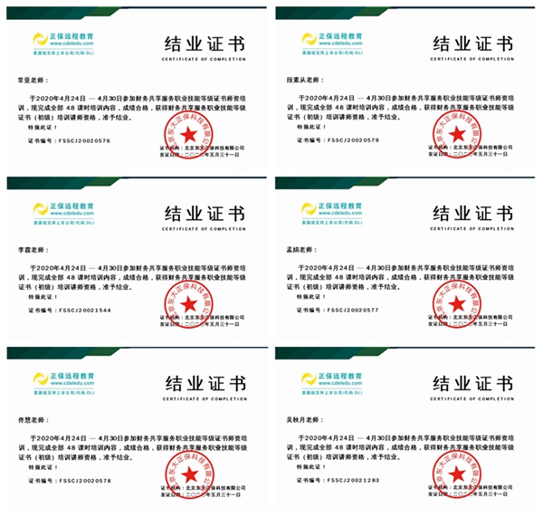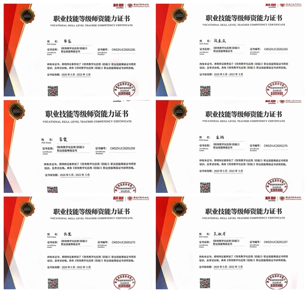 2020年4月24日至5月23日,信息管理学院财经专业李霞、孟娟、吴秋月、常亚、佟慧、段素从6位教师参加了由北京东大正保科技有限公司主办的1+X财务共享服务证书和由新道科技股份有限公司主办的1+X财务数字化应用证书两场师资培训班,培训班采取线上授课、训练、考核的“云培训”方式进行。6位教师在课务繁重情况下,挤时间、想办法,利用晚上、周末时间,熬夜加班,完整地聆听了企业专家直播课,完成了所有线上训练作业,白天做老师,晚上做学生,每天紧盯屏幕时间高达10个小时以上,熬红了双眼,培训结束后大家普遍反映视力急剧下降。付出终有回报,6位老师顺利通过了结业考核,全部考取了“财务共享服务”、“财务数字化应用”两种1+x培训师证书,在师资条件充足的情况下,我校于2020年6月份申报了教育部第三批1+X证书试点学校。 |