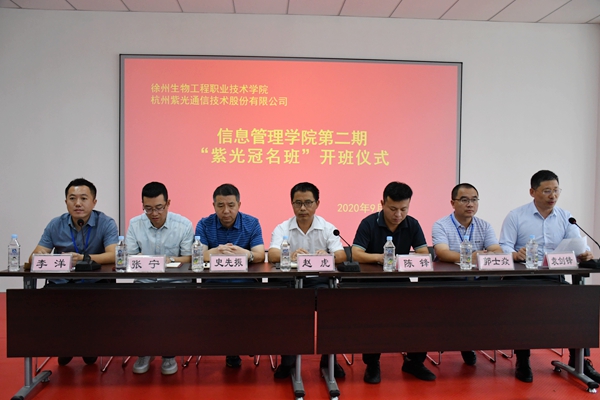 为了贯彻落实学院“三快”办学理念,深入推进“治人文、精技术”教育教学改革,充分发挥高校、企业在人才培养中的各自优势,促进大学生实践能力和创新创业能力的培养与提高,经过校企双方的共同努力,9月28日上午,信息管理学院与杭州紫光通信技术股份有限公司在图书馆三楼报告厅举办了第二期“紫光班”开班仪式,学院副校长赵虎,杭州紫光徐州分公司总经理陈锋,教务处处长史先振,学工处处长郭士焱,信管学院党总支书记张宁,院长袁剑锋,副书记李洋,第二期“紫光班”全体同学和低年级学生代表参加此次开班仪式,仪式由副书记李洋主持。 开班仪式上,袁剑锋首先对杭州紫光徐州分公司总经理陈锋一行的到来表示热烈地欢迎,对杭州紫光重视校企合作,推进人才共育表示衷心感谢,对顺利通过选拔进入本期冠名班的22名同学表示祝贺。接着,他详细介绍了第二期冠名班组建情况及本学期学生外出实习安排进展情况,同时,希望同学们在实习过程中将安全永记心中。 随后,徐州生物工程职业技术学院副校长赵虎发表讲话,他指出:开办校企合作冠名班是创新应用型人才培养模式,探索校企协同育人新模式的有益尝试,是践行学院“三快”办学理念和“治人文精技术”教育教学改革的重要抓手,对于提升学生的就业竞争力和职业素养,提高职业院校人才培养与社会需求契合度有重要意义。他同时对即将出发实习的22名学员提出了殷切的期望,鼓励以杭州紫光班为代表的全体外出实习学生都能够多学多看,多听多做,以优异的成绩回报学校老师和企业师傅的培养。 接着,杭州紫光徐州分公司总经理陈锋为同学们介绍了企业的发展历程与前景,对第二期“紫光班”的建班与未来发展表达了良好的祝愿。他着重介绍了本期冠名班在培训及实践形式上的新做法,第一期冠名班学员在学校集中培训三个月,然后到各基地实践实习,而这一期冠名班采取的是直接到各分公司由企业师傅手把手、一对一的传帮带,学校专业老师利用线上和线下两种模式给予理论指导。陈总希望同学们在认真学习知识、钻研技术的同时,学会沟通和团队协作,不断精益求精、早日融入到企业文化中,成长为社会有用之才。 开班仪式结束后,杭州紫光徐州分公司经理林鑫作了题为《商务礼仪与职业形象》的专题讲座。林经理从个人仪表、服装搭配、商务礼仪等几个方面详细讲解了职业形象应当注意的问题,帮助同学们提升自我竞争力,快速融入职场。 杭州紫光通信技术股份有限公司成立于1999年10月,2015年8月在新三板挂牌上市,是一家上市公司。2019年11月15日,信息管理学院与杭州紫光首次成立“杭州紫光”冠名班,由校企双方共同制定培训内容,开展了为期三个月、共计200余课时的培训学习,取得了较好的成效。
