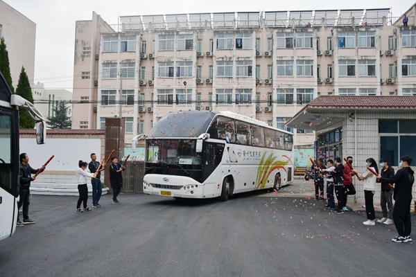 10月4日早八点,迎着清晨的阳光,信息管理学院学生搬迁工作正有条不紊地进行着。现场早已做好准备的第一批学生将行李搬运至指定停靠点,学校领导、信息管理学院、学工处、资产处和保卫处的工作人员现场指挥,妥善安排,做好行李装车和人数清点工作,整个搬运过程忙碌而有序。学校领导分两个校区现场指挥协调,实时对接。下午1时许,随着最后一辆大巴车缓缓驶出泉山校区,信息管理学院千余名在校生全部顺利搬入云龙校区。