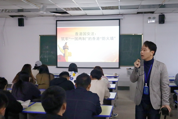 为进一步推进“治人文精技术”教育教学改革,落实“十全育人”,增强同学们的家国情怀,拓宽视野,11月25日下午,信息管理学院邀请学校教务处黄智副处长在云龙校区307教室做了“坚定‘一国两制’,点燃爱国之情”的专题讲座。信管学院200余名2019级专科生聆听了讲座。 黄智老师的讲座主要围绕“一国两制”以及“理智爱国”展开,通过列举解疑的方式,提出如何正确理解“一国”与“两制”之间的关系问题,让同学们对中国大陆与港澳关系有了更深层的了解。黄老师还带领大家回顾了香港事件的起因和经过,梳理了香港“反例修”风波的变迁脉络,并结合具体事例、香港各界的意见和党中央、人民政府的态度与立场,详细阐述了习近平总书记关于香港问题讲话的核心内容。他鼓励全体青年学生要正确认识香港问题,坚定理想信念,坚决拥护“一国两制”方针政策,努力为社会主义事业发展贡献属于自己的力量。最后,黄老师结合学生提出的问题进行了详细解答。 此次讲座内容翔实、课件精美,紧扣当下时政,对帮助广大学生清楚认识香港问题,深入了解国家政策,厚植爱国主义情怀有重要意义。