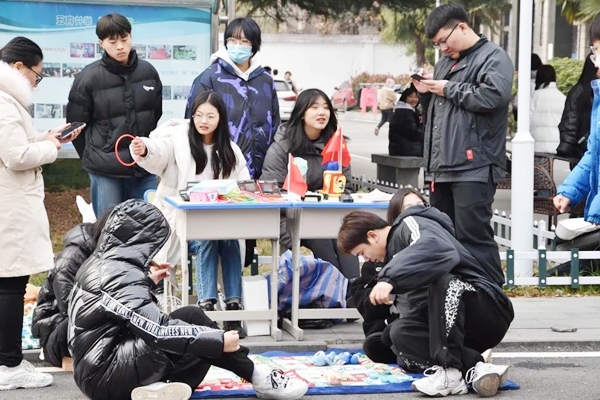 由信息管理学院团总支策划的第一届“能挑善找,变废为宝”跳蚤市场活动于12月18日在云龙校区开市啦! 中午12时,跳蚤市场一开市,“欢迎你来唱”、“甜品DIY”、“看你能跳多远”、“套圈啦”、“画画大比拼”等一个个别具特色的小摊位就陆续出摊了,“小商贩们”在各个社团或班级组织下“各就各位”,摆出了各式各样的美食、精美的手办和可爱的玩具,吸引着众多小伙伴们前来“剁手”。为了让自己的“商品”更具吸引力,“小商贩们”还精心制作了各式各样的招牌。一张张海报,活泼可爱,煞是好看。 同学们有的与“卖家”讨价还价,有的吆喝降价打折,还有的买一送一......大家都全身心投入,各显本领,让跳蚤市场的气氛更活跃。一时间,吆喝声、说笑声、唱歌声此起彼伏,午后的云龙校区倍显热闹。 此次活动在贯彻学院“三快”发展理念的同时,丰富了同学们的课余生活,使同学们明白了用自己的智慧和劳动去创造价值和财富的道理,对今后的职业生涯规划有一个新的理解。