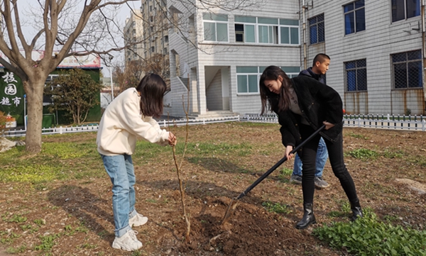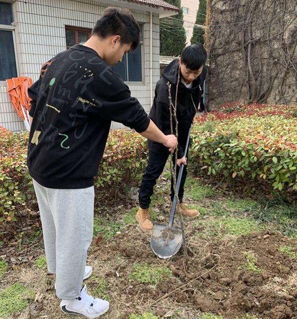 阳春三月,草长莺飞,正是植树添绿的好时节。为进一步传承和弘扬雷锋精神,引导学生深入理解国家“五位一体”发展理念,积极参与美丽中国、美丽校园建设,在“3·12”植树节来临之际,信息管理学院组织志愿者在云龙校区开展植树护绿志愿服务活动。 在老师的带领下,志愿者们以饱满的热情投入到植树活动中,现场一派热火朝天的景象。大家挥锹挖土、取苗扶正、汲水浇灌,配合默契,干劲十足。梨树、桃树、车厘子树……一棵棵新栽的小树苗生意盎然,为初春的校园增添了勃勃生机。 此次活动增强了师生的绿色环保意识与志愿服务意识,把“学雷锋”从口号落实到了实践,培养了同学们崇尚劳动、尊重劳动、热爱劳动的优良品质,为进一步建设绿色校园贡献了自己的力量。