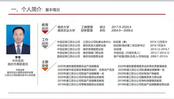 校友李冬现就职于中信证券江苏分公司私募业务中心总经理,任南京市青联委员、青商委员,南京大学学生生涯规划导师。李冬与即将走上实习岗位的2022届毕业生代表分享了其毕业以来的个人成长经历,并着重从“心怀理想”、“相信坚持的力量”以及“做事要求真务实”三个方面分享了自己学历提升和职场发展上的心得体会。他鼓励同学们要树立正确的人生目标并为之奋斗,要不断提升自己的专业能力,同时加强创新、社交、学习、决策、管理等能力的培养,重视人脉的积累与团队合作,学会抓住机遇,勇敢挑战自己。在随后的提问环节,同学们与李冬积极交流,就实习岗位表现、初入职场心态以及就业岗位最看重毕业生哪些素质等做了深入的探讨和交流。