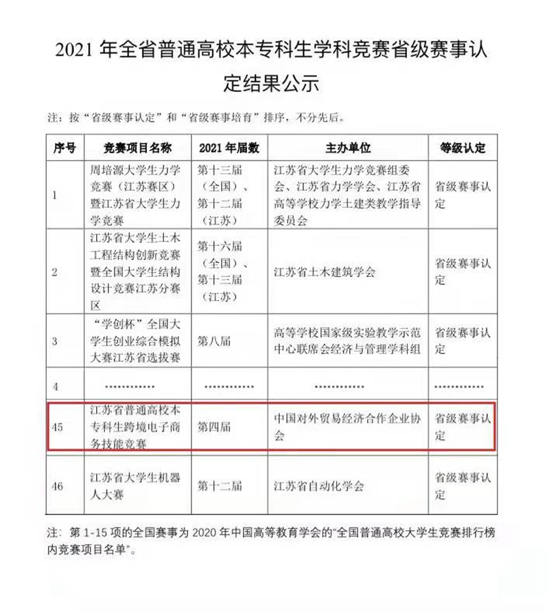 我校学生在第四届江苏省本专科跨境电商技能竞赛中获一等奖