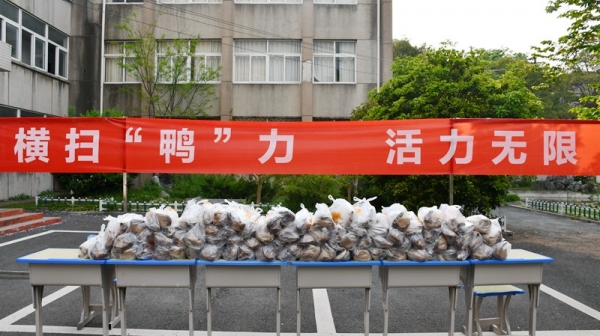 彭城四月,暖意浓浓。这份温暖,不仅来自春天的馈赠,也是来自学校的一系列“超暖心”举措。自从3月29日校园实行全封闭管理以来,信息管理学院积极加强人文关怀和服务保障,坚决守护每一位学生的安全与健康。二十多天里,累计发放口罩2万余只,水果700余斤,免费餐2次……但是!学院的关怀不会因此而止步。为了满足一颗颗“吃货”的心,学院经多方协调,终于在4月18日下午将一只只色泽红润、香味扑鼻的烤鸭递到了学生手中。