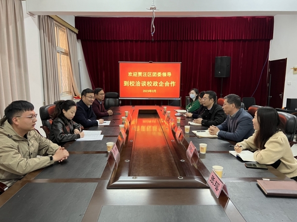 为进一步加强校地合作,推进“产学研”深度融合,服务乡村人才振兴,助力农村产业发展和农产品上行,3月14日上午,团贾汪区委书记孙经超、副书记皇甫思阳、徐州徐薯薯业科技有限公司总经理袁起等一行来我院开展校政企合作洽谈。校团委书记徐媛媛、信息管理学院党总支书记张宁、院长袁剑锋、电子商务专业带头人刘媛媛及学院团学组织负责同志等参加座谈。座谈会由张宁书记主持。