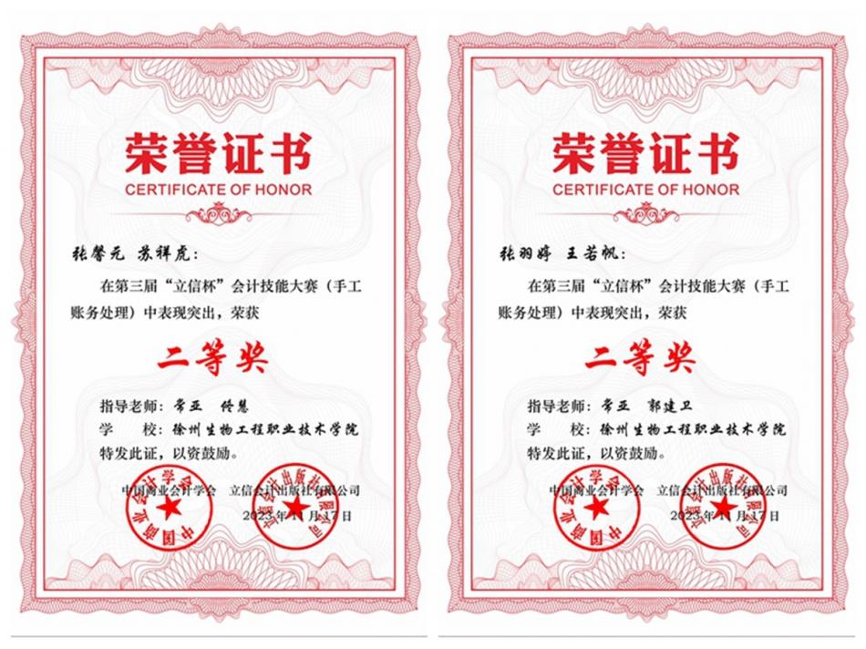 2023年11月,由中国商业会计学会主办、立信会计出版社和烟台理工学院承办的第三届“立信杯”会计技能大赛(手工账务处理)在山东烟台顺利举办。经过大赛专家的两轮评审,信息管理学院选送的两组作品脱颖而出,均获得团体二等奖的好成绩,我校荣获优秀组织奖。