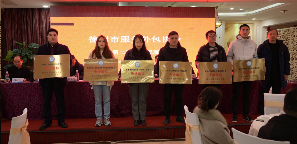 2024年1月26日下午,徐州市服务外包协会第二届二次会员代表大会在徐州市云龙区隆重召开,江苏省服务贸易协会秘书长万力,徐州市商务局党委委员、副局长蔡智,各县市区商务部门领导,徐州市服务外包协会各会长、理事,会员单位的代表共计百余人参加了此次大会。会上,我校当选“徐州市服务外包协会理事单位”,信息管理学院获评“徐州市服务外包协会先进单位”。